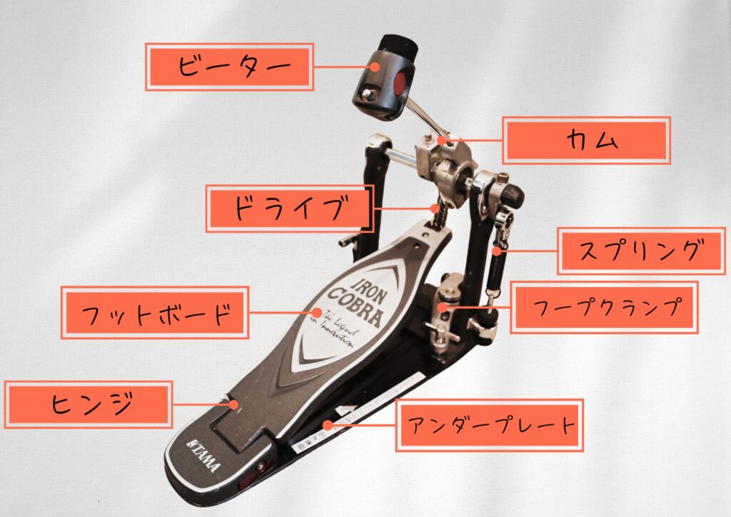 スプリング…踏み心地の加減やビーターの戻りの加減を調節する部分。