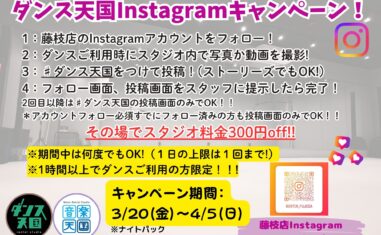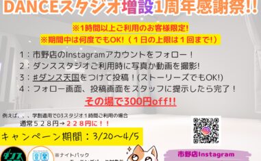 お知らせ 【3月~4月 ダンス天国・浜松市野店】DANCEスタジオ増設1周年感謝祭!!
