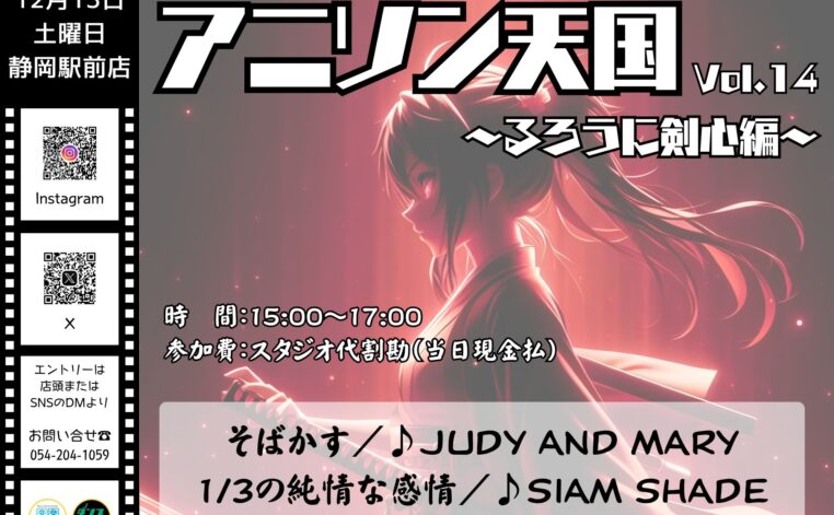 【2025年12月13日(土) 音楽天国・静岡駅前店】アニソン天国Vol.14~るろうに剣心編~
