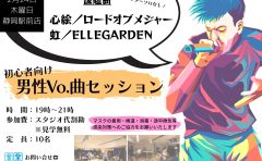 終了しました【2022年2月27日(日) 音楽天国・静岡草薙店】誰でも1回は絶対聴いたことあるSong session 2022.01.202022.02.27 2022年2月27日(日) 草薙5スタジオ(広い!)にて 17時から19時予定! 参加費はおひとり様500円から700円程度予定。 定員13名(見学の方も予約が必要です) エントリーは店舗までお電話、又は各SNSのDMで受け付けます! 新しく仲間を増やしたい方!初心者の方も是非お越しください! 今回は渋めの選曲だよ!
