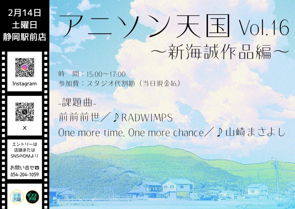 【2026年2月14日(土) 音楽天国・静岡駅前店】アニソン天国Vol.16~新海誠作品編~