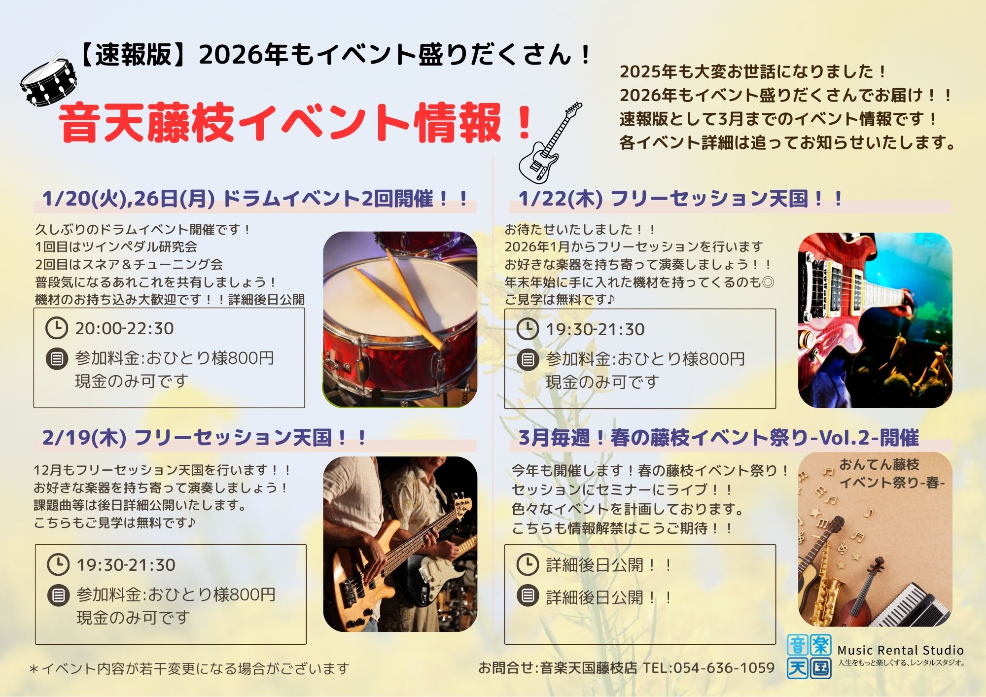 【2026年1月 音楽天国・藤枝店】2026年もイベント盛りだくさん!音天藤枝イベント情報!