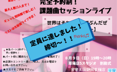 終了しました【2020年7月26日(日)音楽天国 静岡駅前店】1周年だよ!!配信スタジオライブ開催! 2020.07.142020.10.16 7月13日で音楽天国・静岡駅前店は1周年を迎えることが出来ました! いつもご利用ありがとうございます! 1周年を記念して、駅前店のスタッフ+αによるスタジオライブを開催! 7月26日(日)18:00より Twitter、Instagramにて配信スタート!! ぶっつけ本番の4曲勝負!!ぜひご覧ください! このイベントを機に、随時イベントをコロナウイルス対策を行ったうえで再開してまいります。 今後とも音楽天国静岡駅前店をよろしくお願いいたします。
