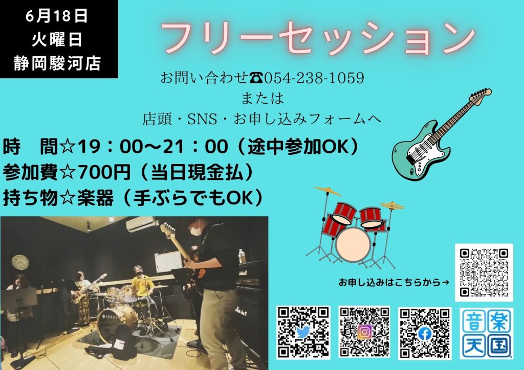 終了しました【2024年6月18日(火) 音楽天国静岡駿河店】フリーセッション 2024.05.232024.07.12 駿河のセッションは火曜日の夜!お仕事帰りにふらっと寄って楽しめちゃいます♪お好きな楽器を持ち寄ってフリーセッションを楽しみましょう!初心者の方も経験者の方も、どなたでもご参加OKです。お待ちしております!