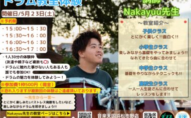 【2026年5月23日(土) 音楽天国・浜松市野店】ドラム体験教室