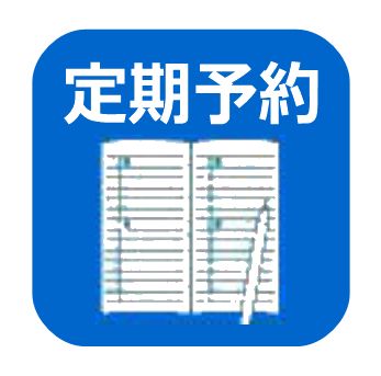 ![]() | 定期ご予約 ご予約の手間を解消する定期予約をご利用下さい。 月1回でもOK!隔週でもOK!1週間前ならキャンセルもOK!です。 特典:無料のお荷物お預かりスペースをご利用いただけます。 ※最長6ヶ月先までのご予約承りが可能です。 |